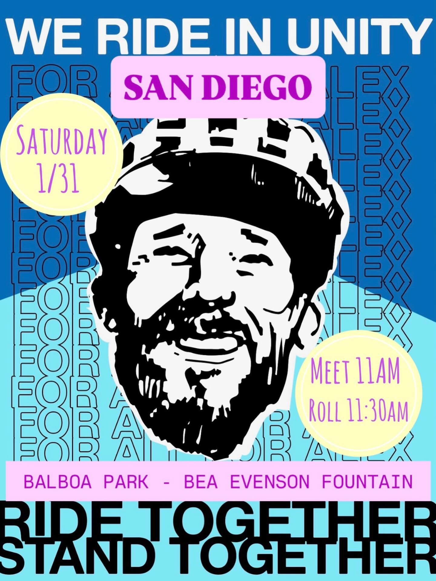 Ride In Unity For Alex11:00 AMGroup RideBikes Del Pueblo @bikesdelpuebloSAN DIEGO: Join us for a nationwide solidarity ride in honor of Alex Pretti, organized by @angrycatfish in Minneapolis. Alex was a 37-year-old Veterans Affairs ICU nurse and passionate cyclist whose life was stolen by federal immigration agents when he was fatally shot while trying to protect his community. Cyclists across the country are uniting to remember him and stand for justice.