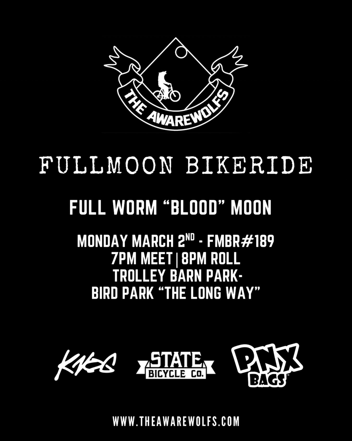 FMBR#1897:00 PMGroup RideThe Awarewolfs @theawarewolfsMarch 2nd: Full Worm/Blood Moon