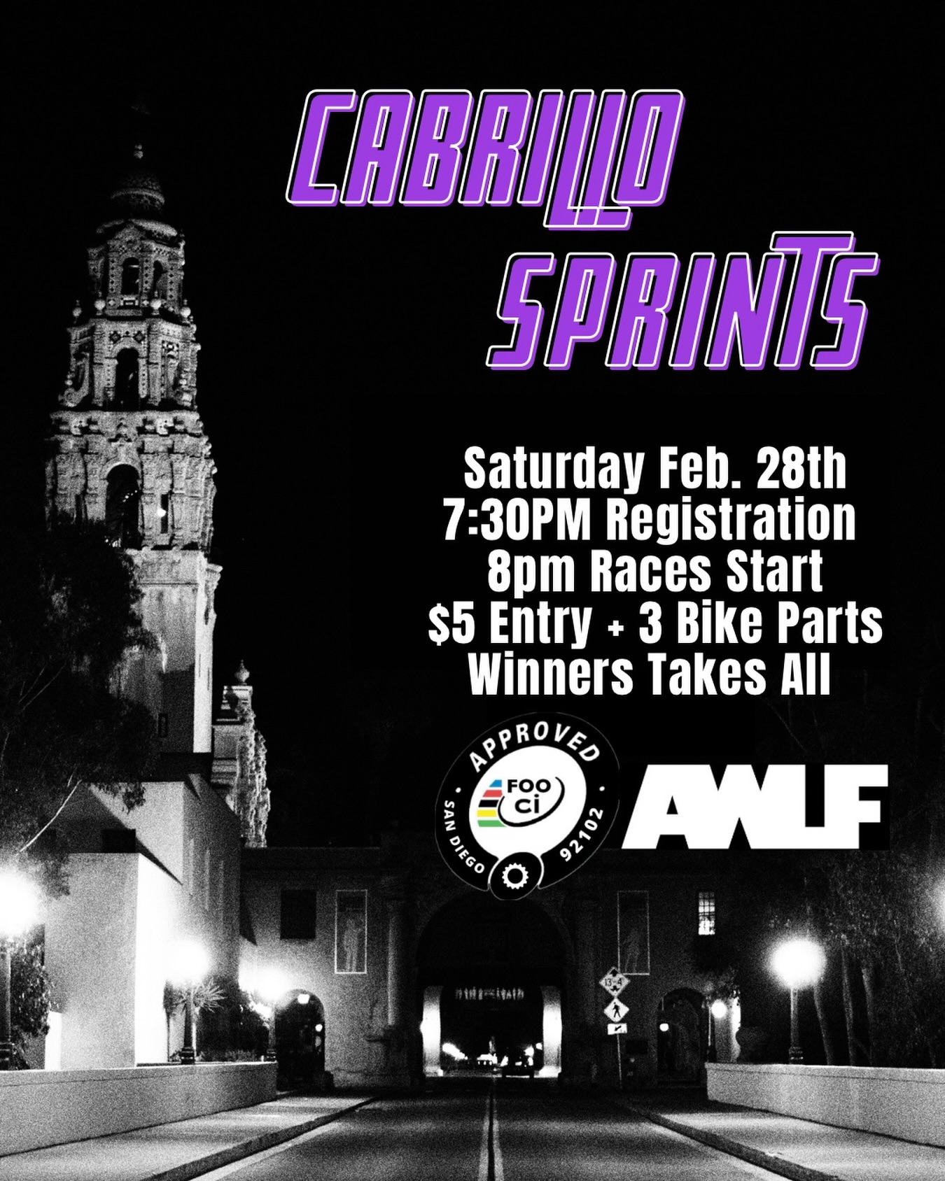 Cabrillo Sprints7:30 PMRace (Unofficial)Foo C.I. @inlinesixerThe next chapter in the FOOniverse series