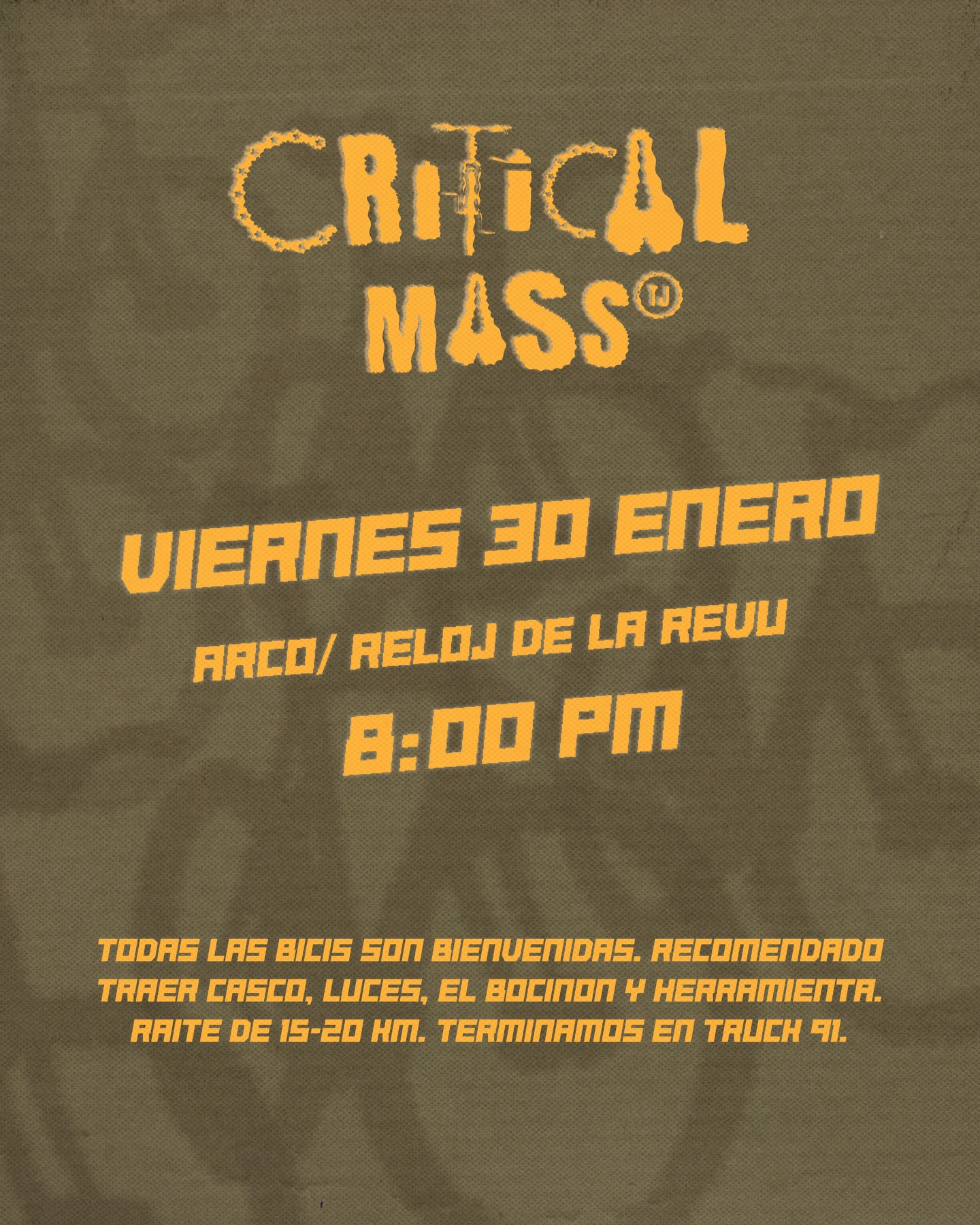 Critical Mass TJ8:00 PM (Ultimo Viernes del Mess)Group RideTJ Critical Mass @tj.criticalmass¡El primero del año!