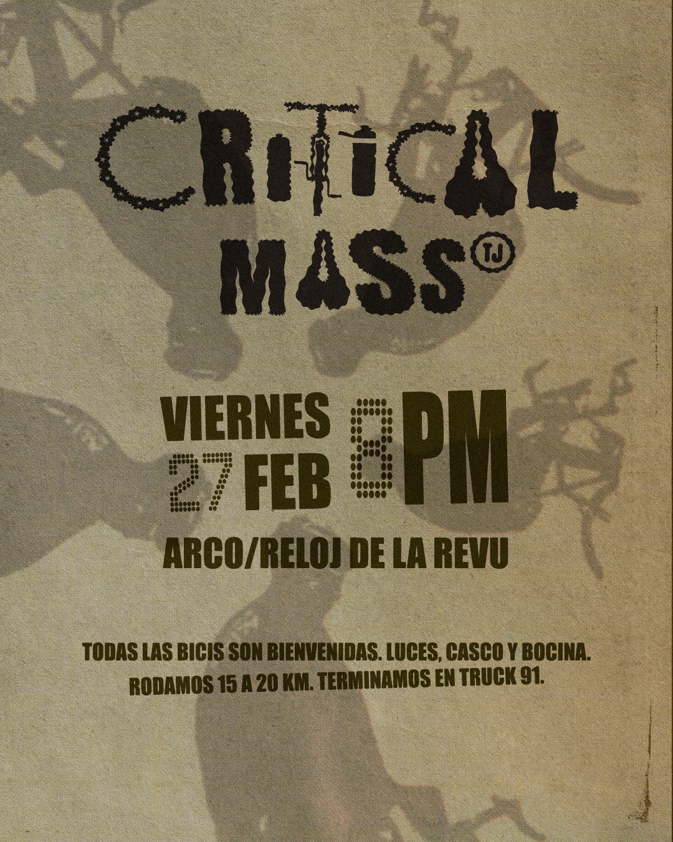Critical Mass TJ8:00 PM (Ultimo Viernes del Mess)Group RideTJ Critical Mass @tj.criticalmass🗓 Viernes 27 de Febrero
