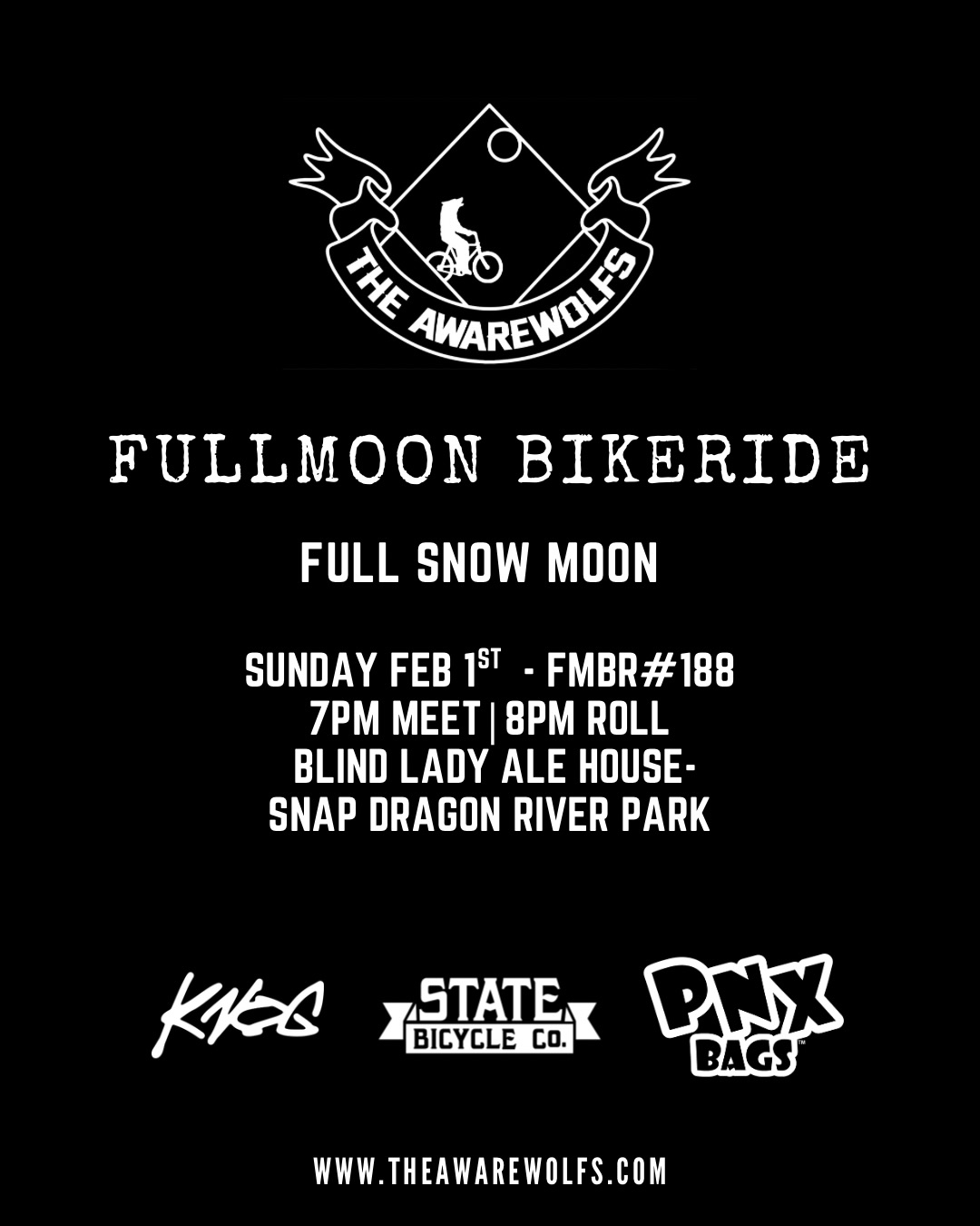 Full Snow Moon Ride | FMBR 1887:00 PMGroup RideThe Awarewolfs @theawarewolfsFeb 1st - Full Snow Moon