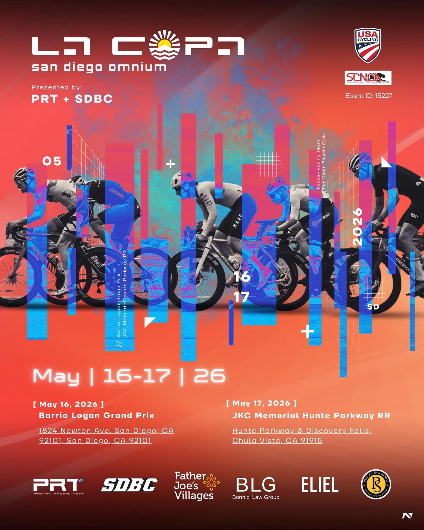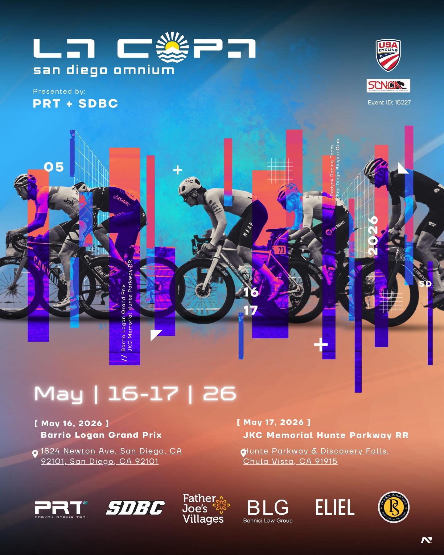 JKC Memorial Hunte Parkway Road Race7:00 AM (La Copa San Diego Omnium - Day 2)Race (Official)Padyak Racing Team @padyak_racing_teamJKC Memorial Hunte Parkway Road RaceHosted by PRT — rolling hills, strategy, and strength to the line.